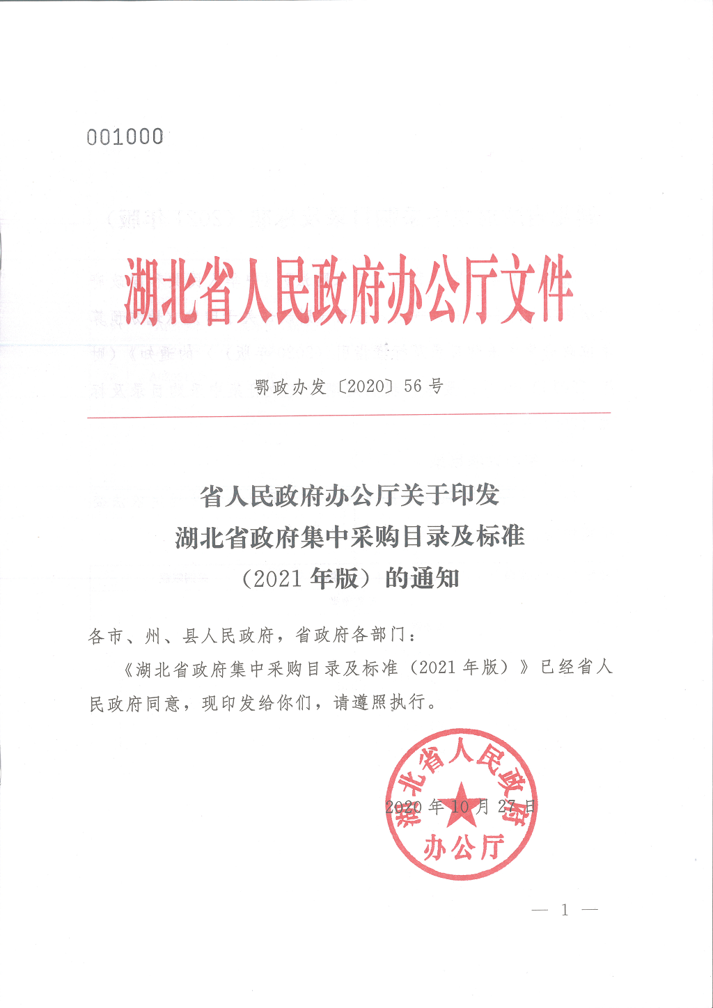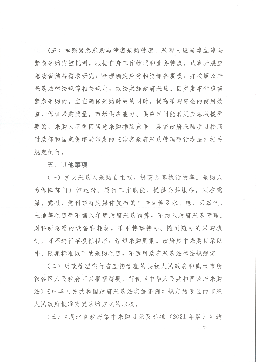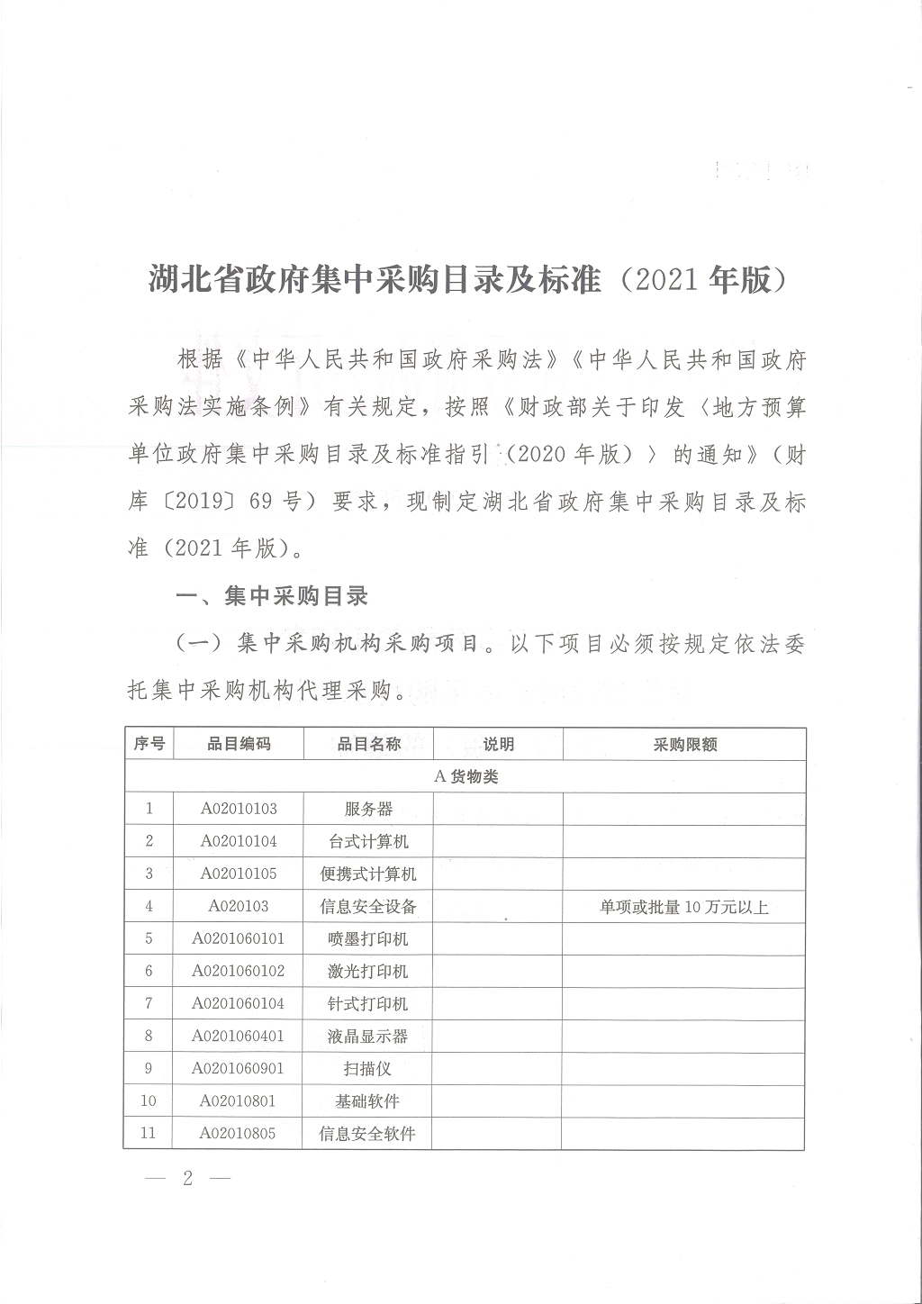 湖北省人民政府办公厅关于印发湖北省政府集中采购目录及标准(2021年版)的通知