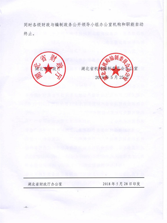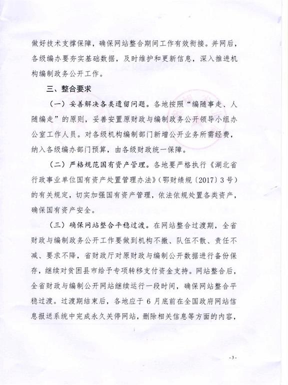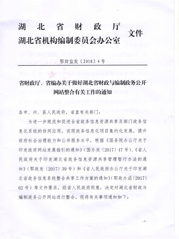 省财政厅、省编办关于做好湖北省财政与编制政务公开网站整合有关工作的通知(鄂财监发〔2018〕4号)